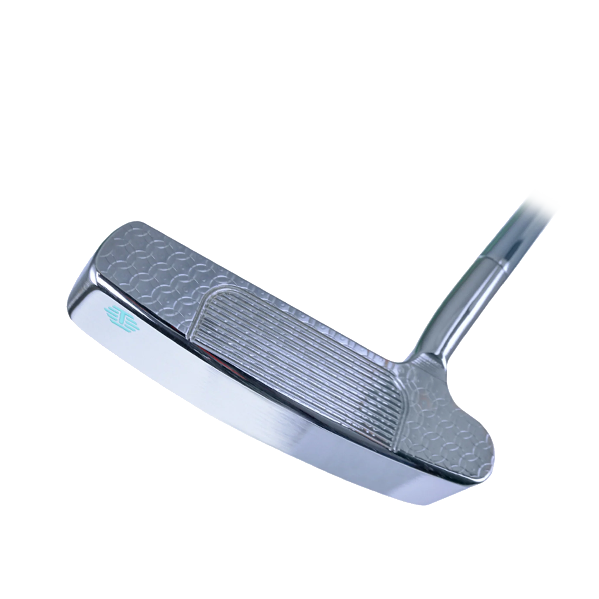 A one-of-a-kind creation for The Hive only, this hand stamped BBZero Flow neck is minimalistic from address, with no sight alignment distracting from a clean and classic appearance. A hand-stamped pocket with tiffany blue and black snow, and Zero DASS stamped on the bumpers makes this putter even more unique. A single T Hive precision engraved on the sole finishes off this 1/1 gamer, and comes paired with a matching Hive only headcover, and black leather grip.