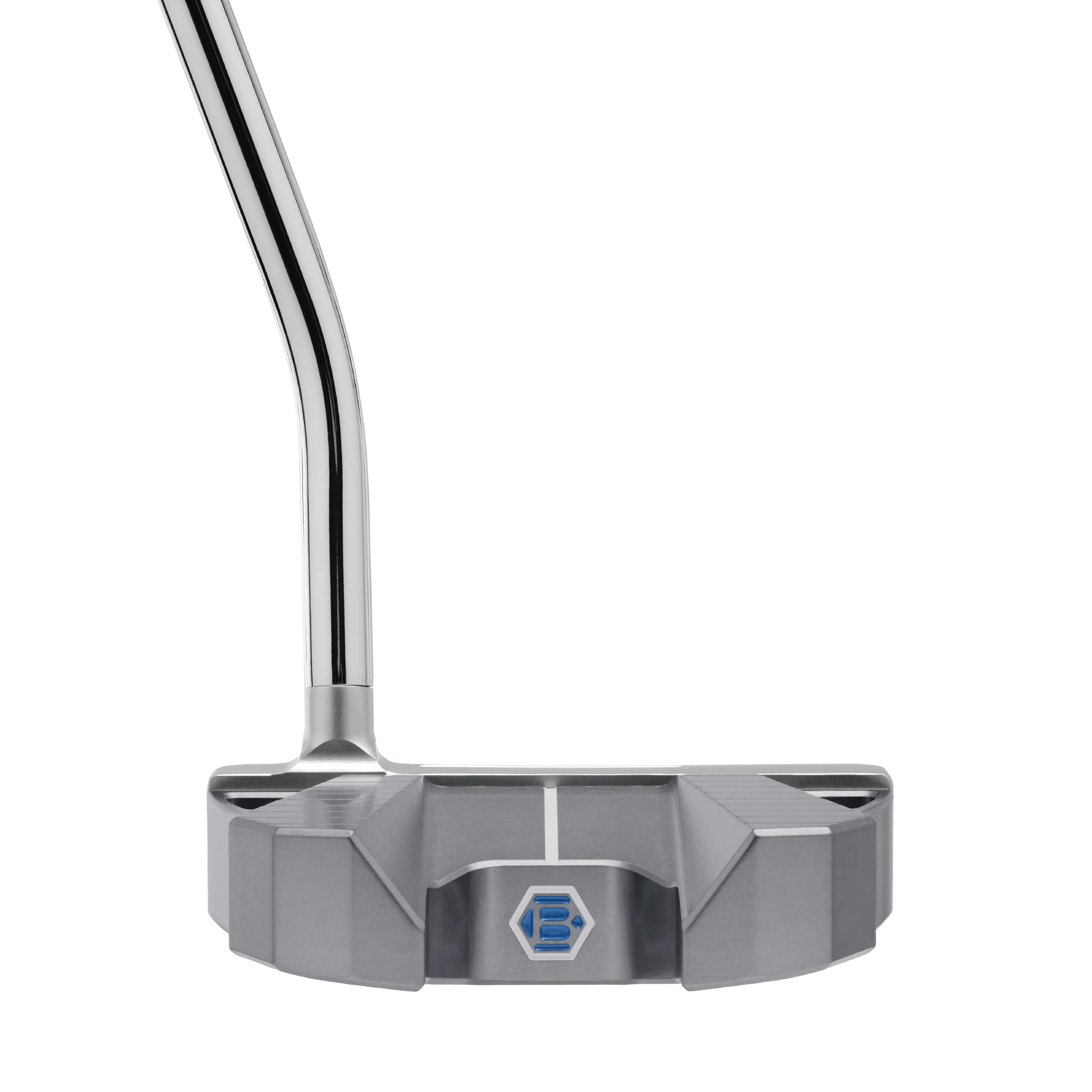 Robert crafted his new INOVAI 6.5 Spud neck with a combination of the finest American 303 Stainless Steel and Military Grade 6061 Aluminum. The Tour Blasted front piece includes our F.I.T. face milling for the softest feel at impact, ideal for the player with an aggressive putting style. The Gun Metal Gray Anodized back piece includes muscular fangs that form a perfect hex cut-out and stark sightlines that provide alignment visuals to help keep the putter head moving toward the target. The two triangular vents help optimize the MOI and the 5-plane sole helps the putter sit beautifully at address. This putter was precision-milled to 354 grams & features a Honeycomb milling pattern on the sole that completes the trademark Bettinardi look. The INOVAI 6.5 putter features a sleek gray, blue, and white color scheme and comes perfectly paired with a matching white & gray honeycomb headcover and a blue Lamkin grip.