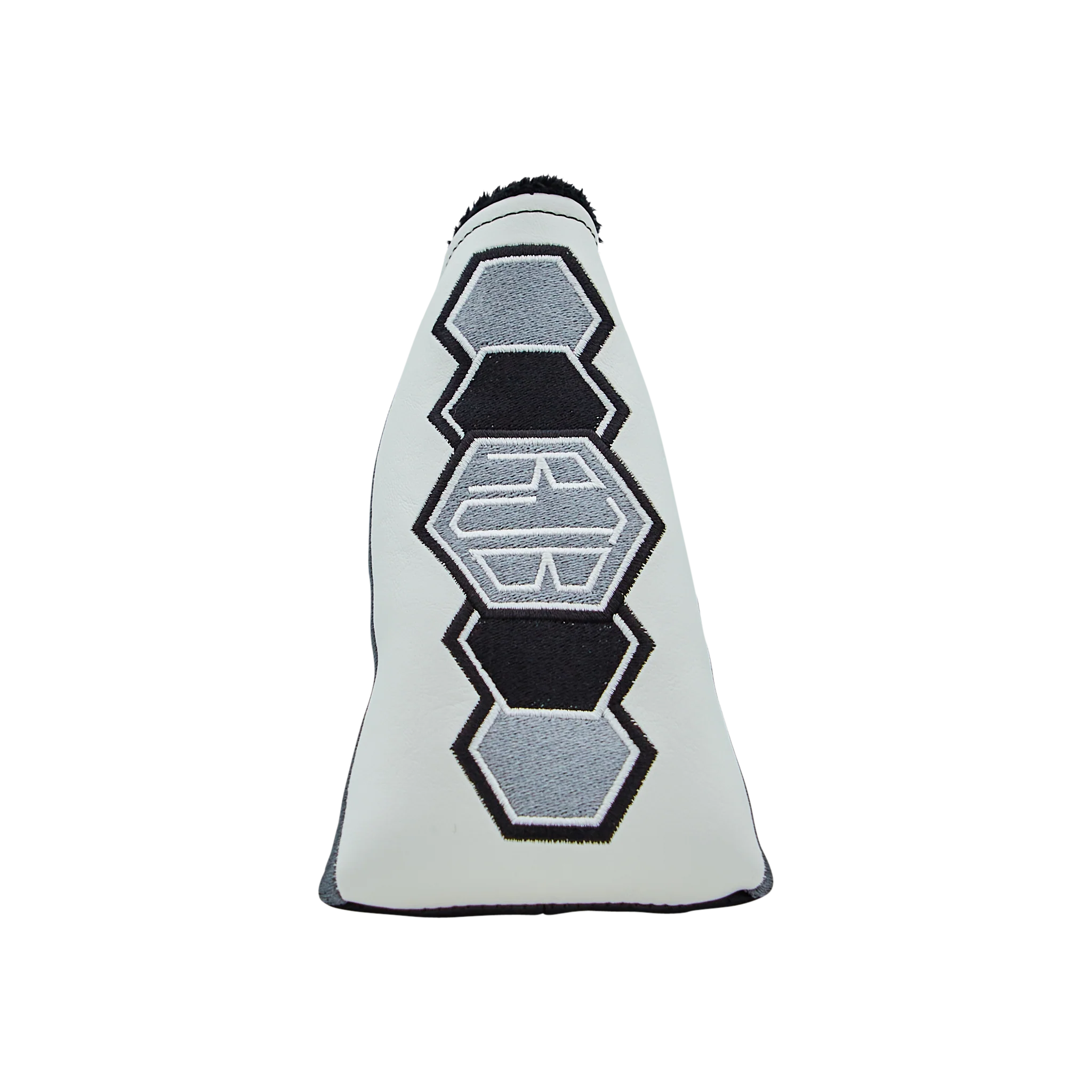 RJB is pleased to bring you this clean Retro Original blade headcover. Adorned with hexes on the front, and our old school Stinger on the side, this headcover was expertly crafted with black perforated leather on the side and white leather on the front and is featured in a black, white, and silver colorway that will add an element of class to any putter.