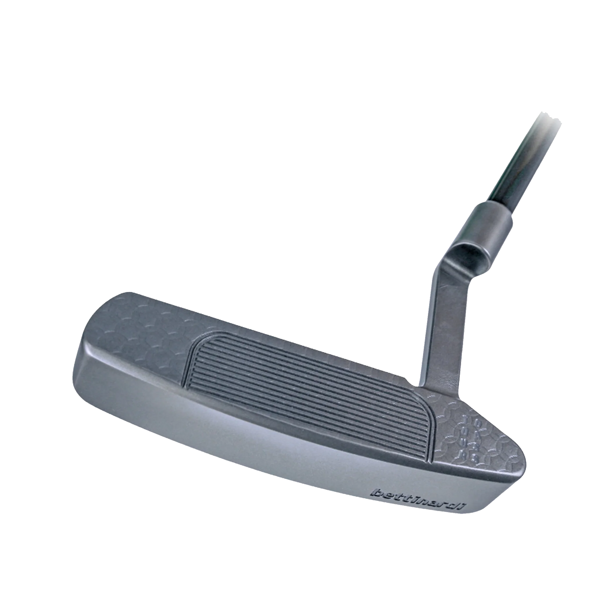 Milled from Double-Aged Stainless Steel, and featuring 14 copper plugs hand-inserted into the neck and bumpers, this BB8 is clean with some extra pop! Three unique skull and crossbones appear in the pocket with a ‘shady skull’ featured on the right side. The bumpers are milled over with Honeycomb milling for that extra pizazz you would come to expect from our Tour product. A clean sole and F.I.T. Face milling complete this one-off putter, coming complete with a matching Tour cover and black leather grip.
