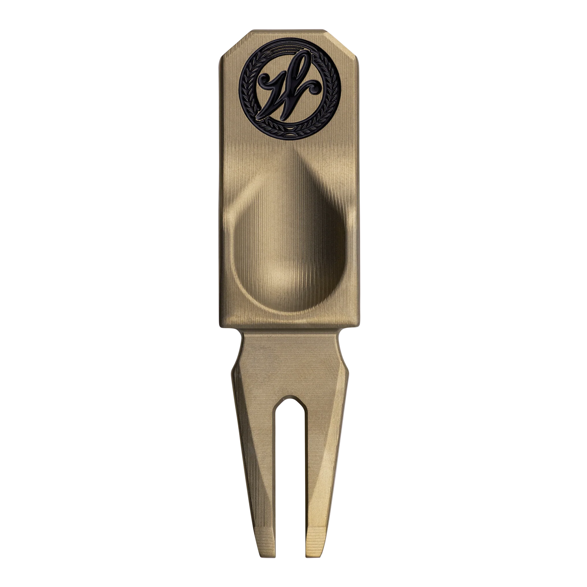 Designed with elegance and crafted with purpose, this dual-prong divot tool was expertly milled from the same 303 Stainless Steel as our putters. The front features a Weller wordmark engraved over Micro Honeycomb milling, and the reverse features a Weller mark above the thumb contour, all accented with black paintfill. Limited quantities are available. Limit 1 per person.